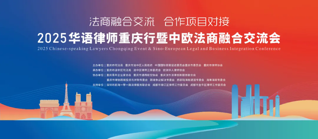 2025年9月19日,由重庆市司法局、重庆市渝中区人民政府、中国国际贸易促进委员会重庆市委员会、重庆市律师协会共同主办,重庆市渝中区司法局、渝中区律师工作委员会、欧洲华人律师协会承办的“2025华语律师重庆行暨中欧法商融合交流会”在重庆成功举行。渝中区人民政府副区长薛俨、重庆市律协副会长陈友坤、欧洲华人律协会长朱轶凡、中国国际贸易促进委员会重庆市委员会副会长张海清等为交流会分别致辞。来自中国和欧洲十余个国家的律师代表、企业负责人、政府官员及学者近300人参加会议。中豪国际业务部副主任、合伙人李慕乔受邀参会,并在主题演讲环节作为中方代表就“企业跨境投资法律风险管理”主题作精彩分享。
