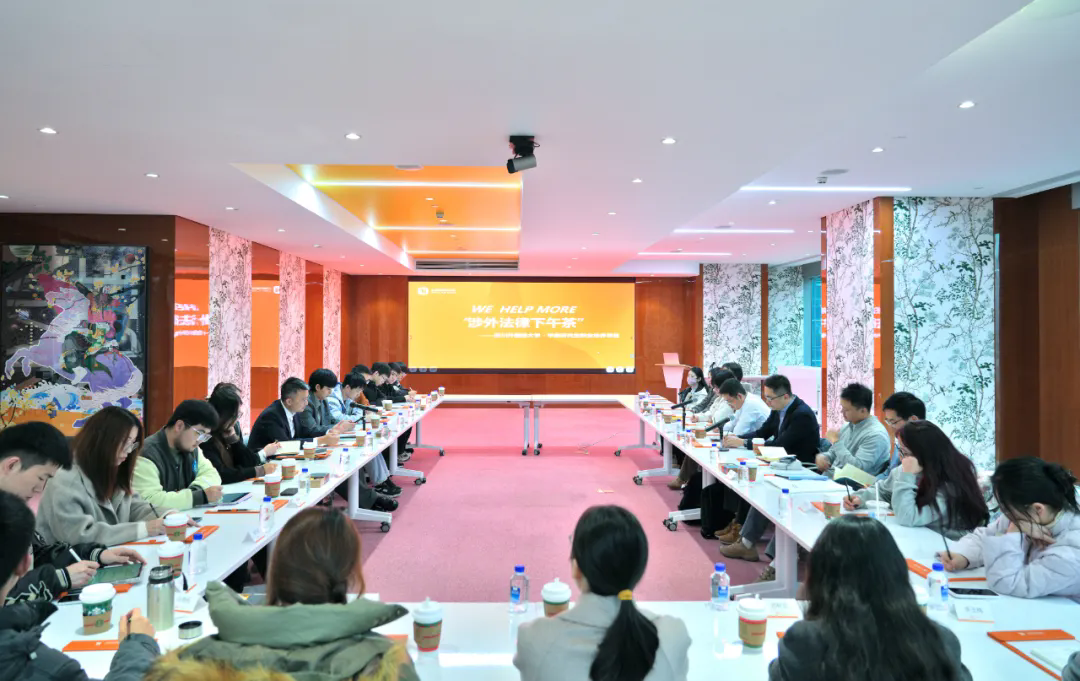 2025年12月3日下午,四川外国语大学日语学院副院长陈可冉、丁世理老师带领二十余名硕士研究生,受邀出席中豪举办的“涉外法律下午茶”专题实践活动。