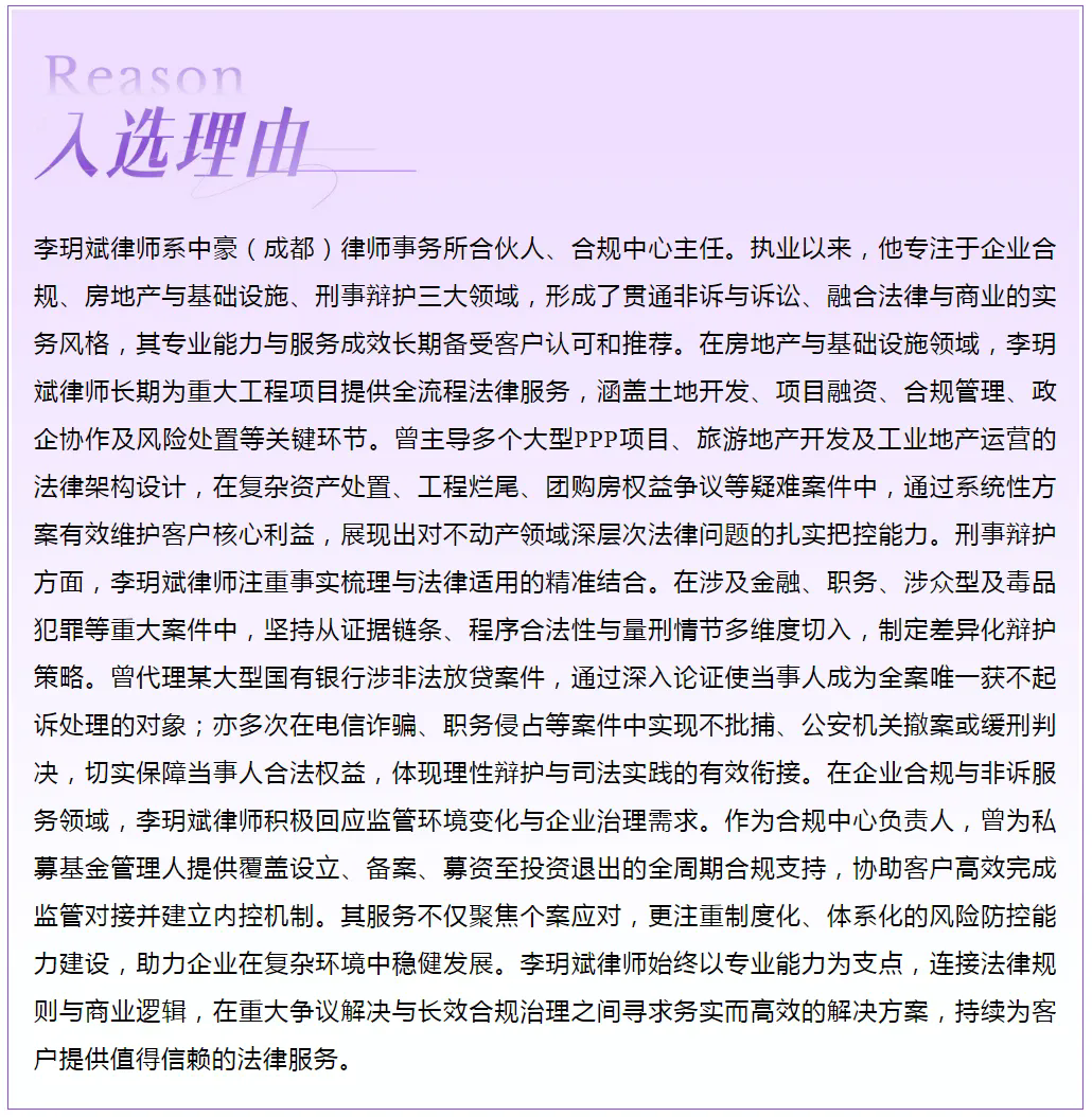 合伙人李玥斌入选“律新社2025年度风云榜:客户力荐律师(成渝)20佳”|中豪荣誉