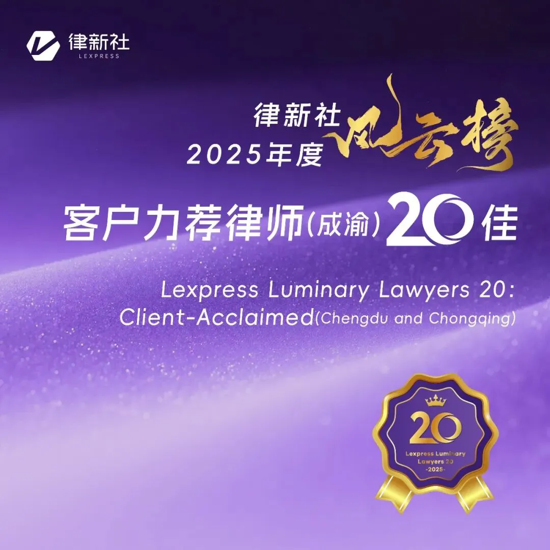 2026年1月30日,“律新社2025年度风云榜:客户力荐律师(成渝)20佳”正式发布,成都办公室合伙人李玥斌律师凭借卓越的专业实力与良好的客户口碑成功入选。